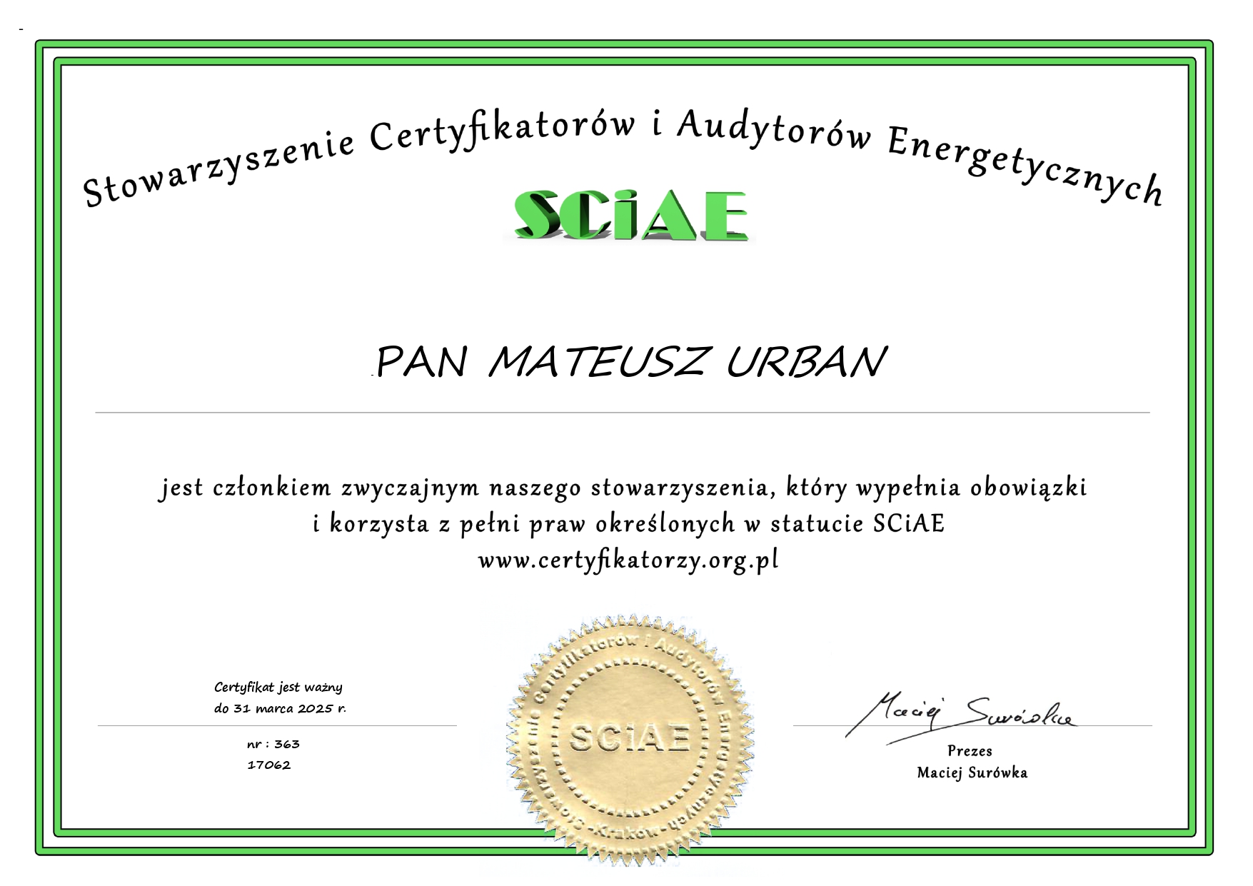 Poniżej znajdziesz Dyplomy ukończenia studiów oraz SCiAE