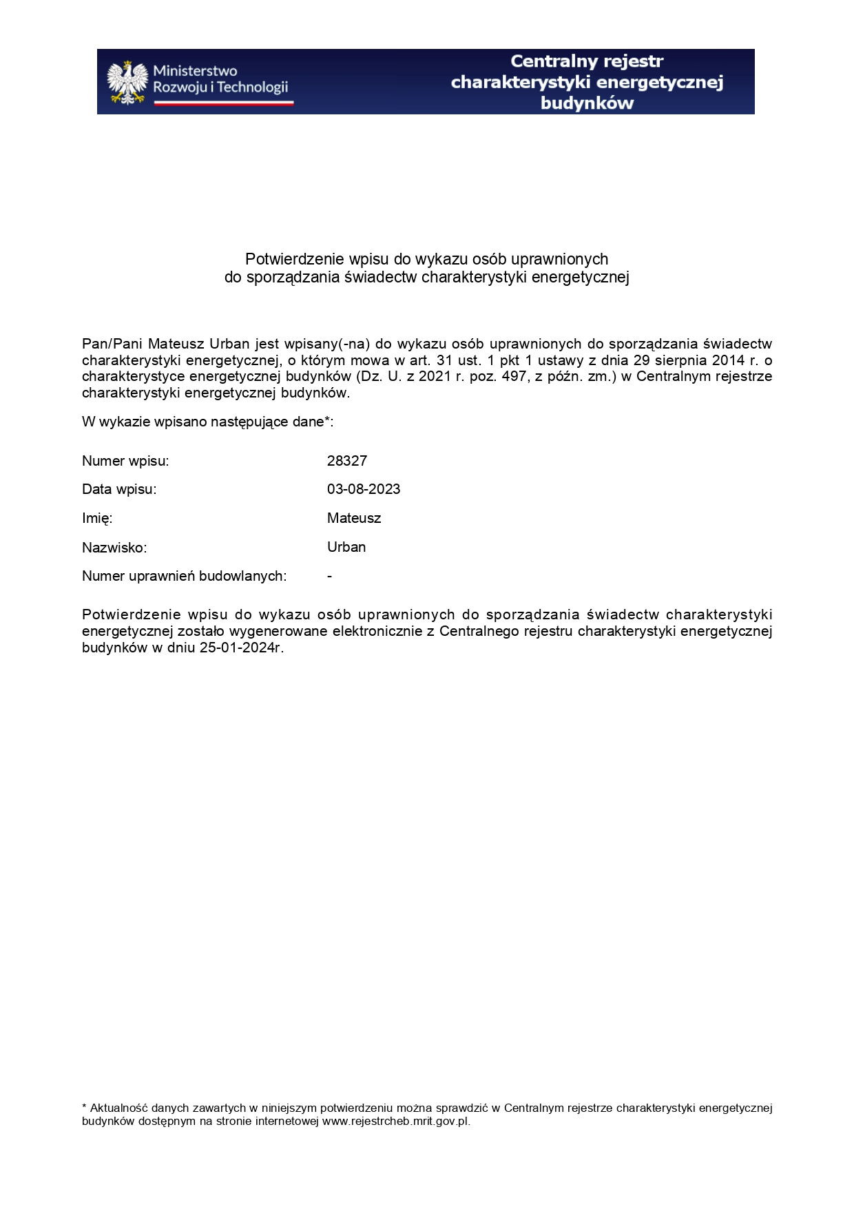Poniżej znajdziesz uprawnienia z zakresu budownictwa i świadectw energetycznych